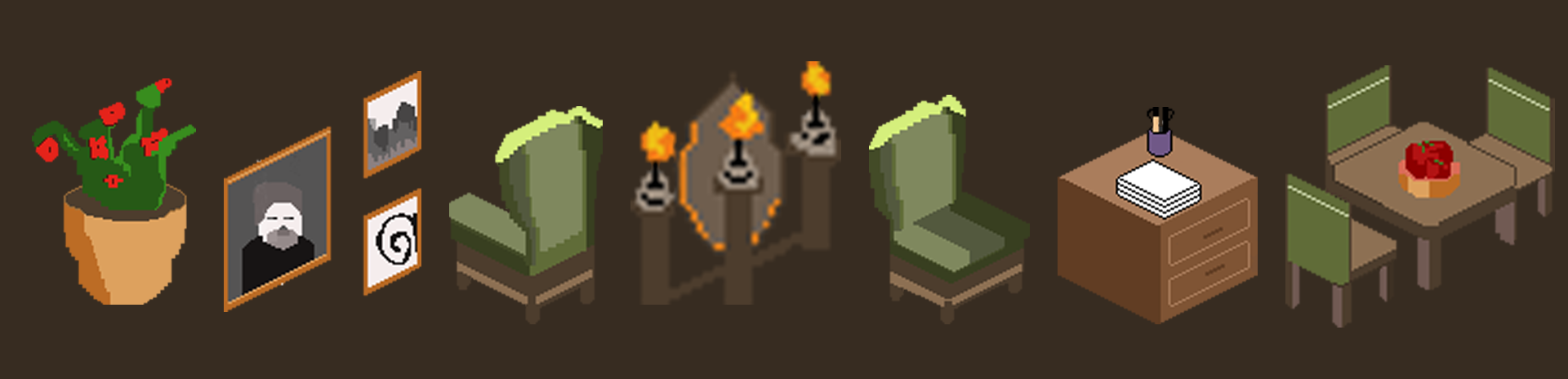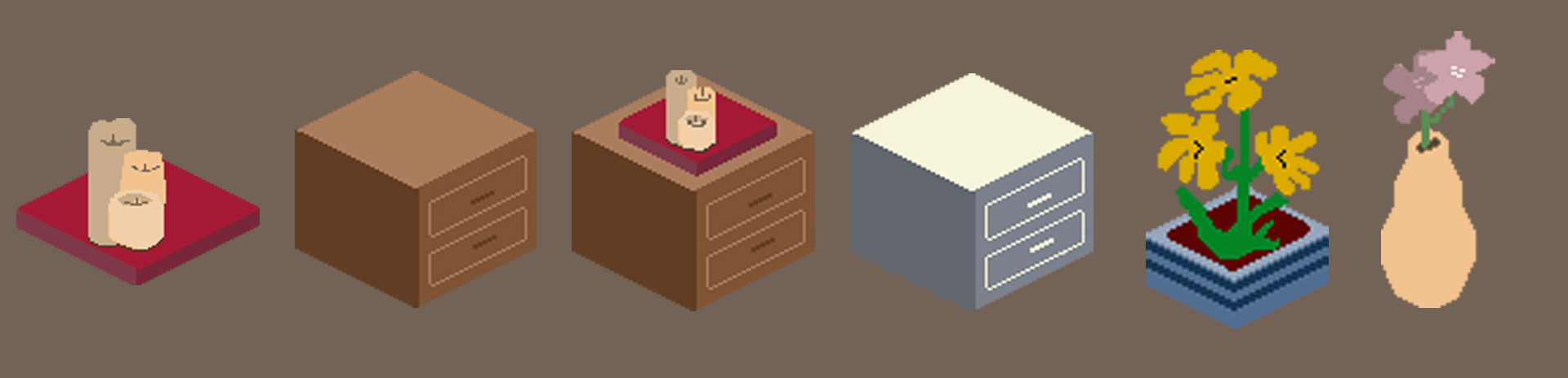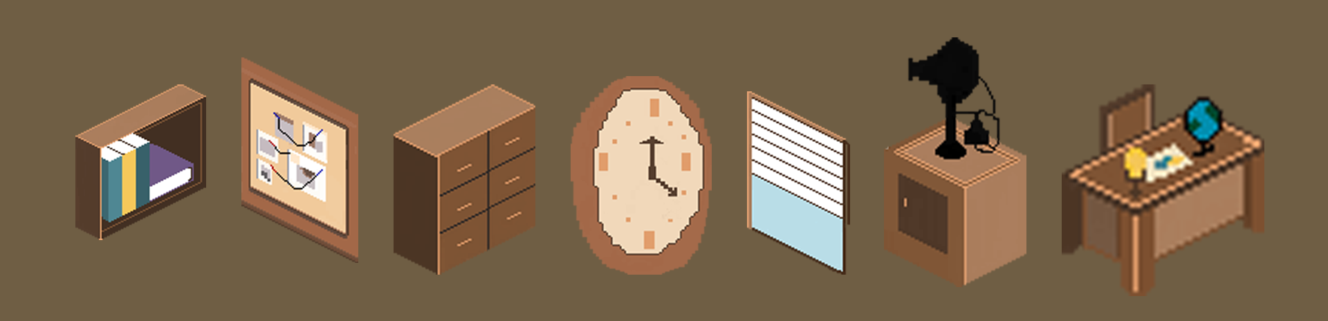 My role in this project as an artist was to create all of the prop art for each room, ensuring that the color palette, style, and isometric perspective matched the overall design. Additionally, it was interesting to immerse myself in the environment of each room and consider the purpose of each asset on the screen.